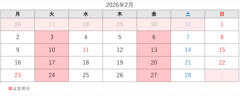 いつも当院をご利用くださいまして誠にありがとうございます。2026年2月のスケジュールをお知らせいたします。