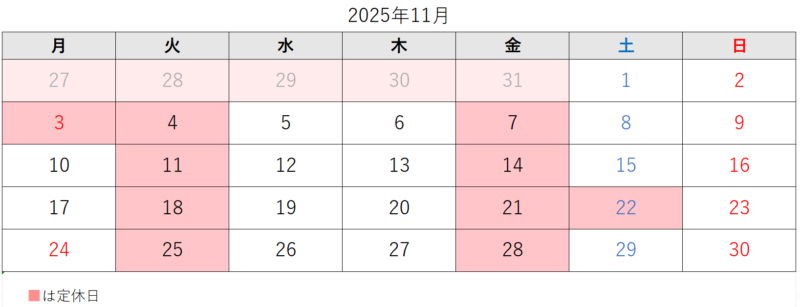 いつも当院をご利用くださいまして誠にありがとうございます。2025年11月のスケジュールをお知らせいたします。